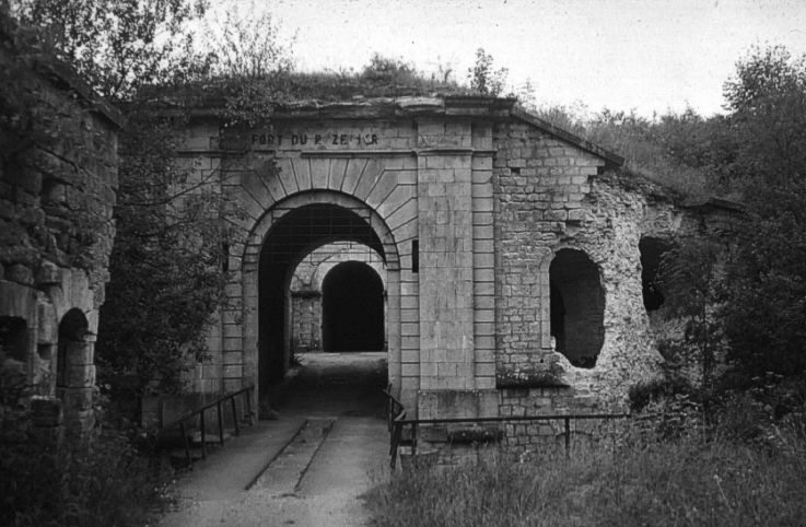 Über dem Eingangstor ist der Fortname aus Eisenbuchstaben fast