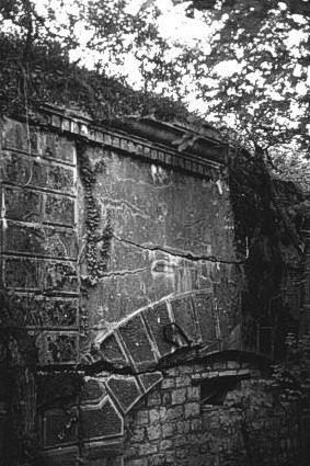 Typischer zeitgenössischer Zustand eines verwachsenen Forts: Zerfallenes Bogenmauerwerk der ersten Bauphase. Es mag auf diesem Bild der Genius