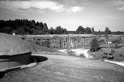 Dachbereich einer betonierten Kaserne mit typischer Viertelwölbung und dünner Erdschicht. (Rozelier, Kriegskaserne) |