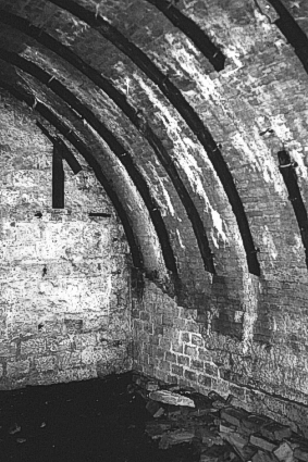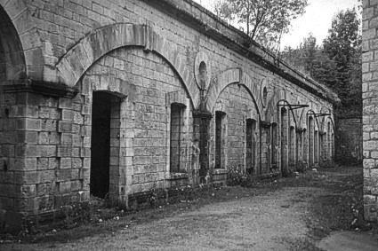 Kasernenhof mit Mauerwerksgewölben (links) und Nachbetonierungen