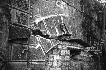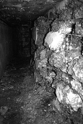 Teilweise eingestürztes Gewölbe im Setzungsbereich (rechts),