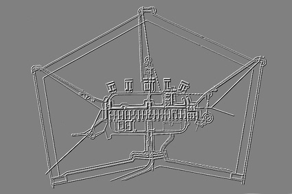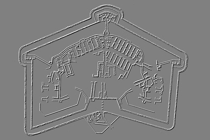 Motive in den Oberbauten wie im Stollensystem. Die Waffentürme sind z.T.
